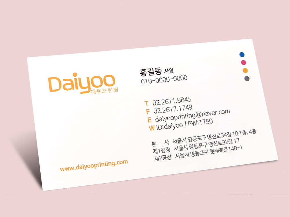 순백색 재질의 광택 없는 무광코팅명함으로