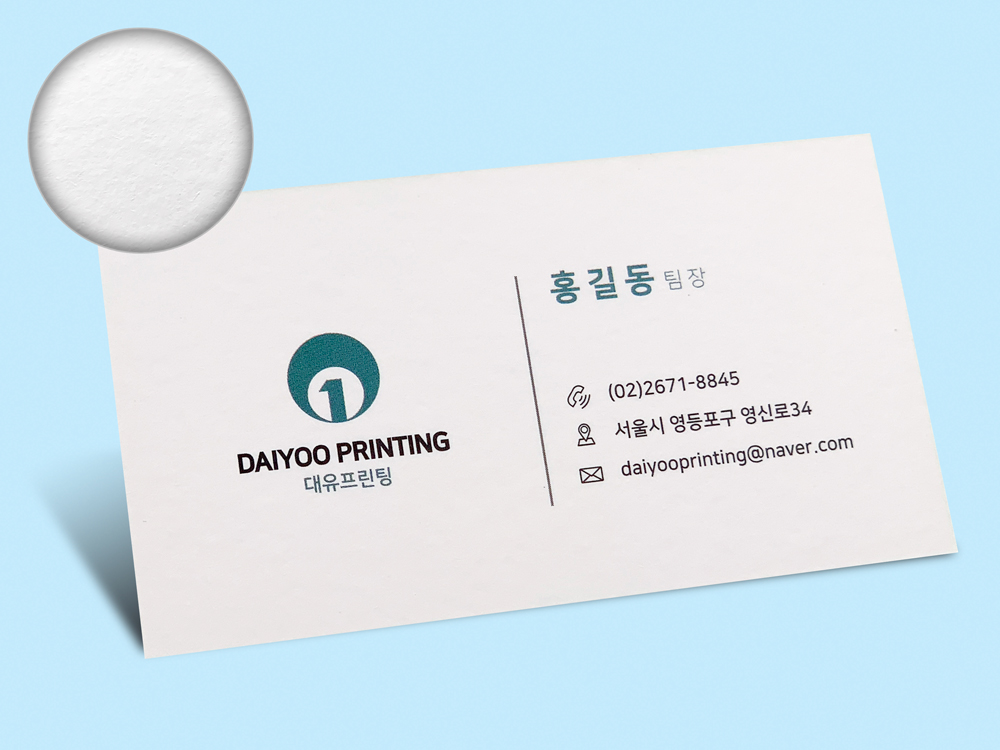 표면은 무광이며 인쇄 부분은 은은한 광택이 살아나