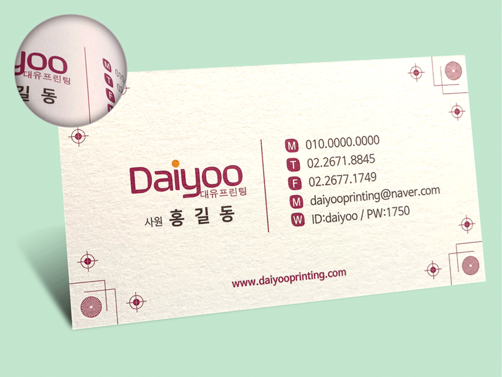 빛을 비추면 금빛이 반짝이는 화려한 명함입니다.